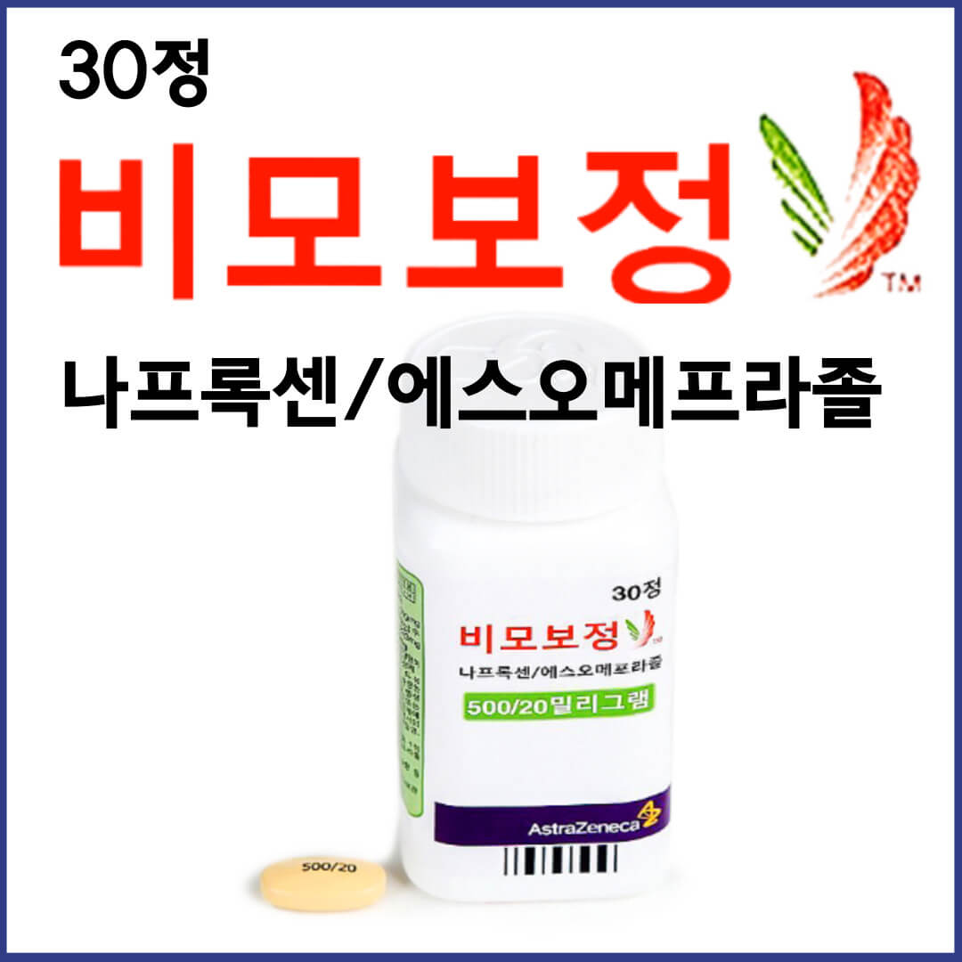 비모보정500/20mg은 나프록센 500mg, 에스오메프라졸스트론튬사수화물 22.3mg이 함유되어 있는 비스테로이드성 소염진통제입니다.